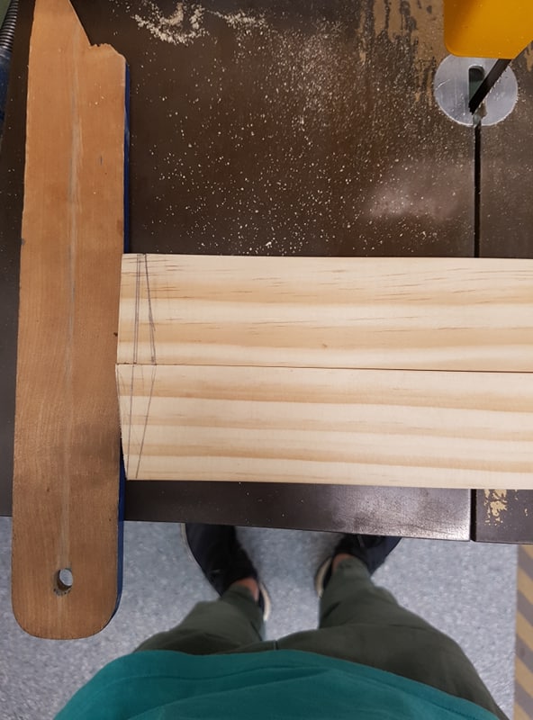 As two of the legs would be moving away from the chair at a 6° angle, the bottom of the legs would need to be cut at the same angle in order to remain flat to the ground. Once again, this was attained through use of the same jig as before.