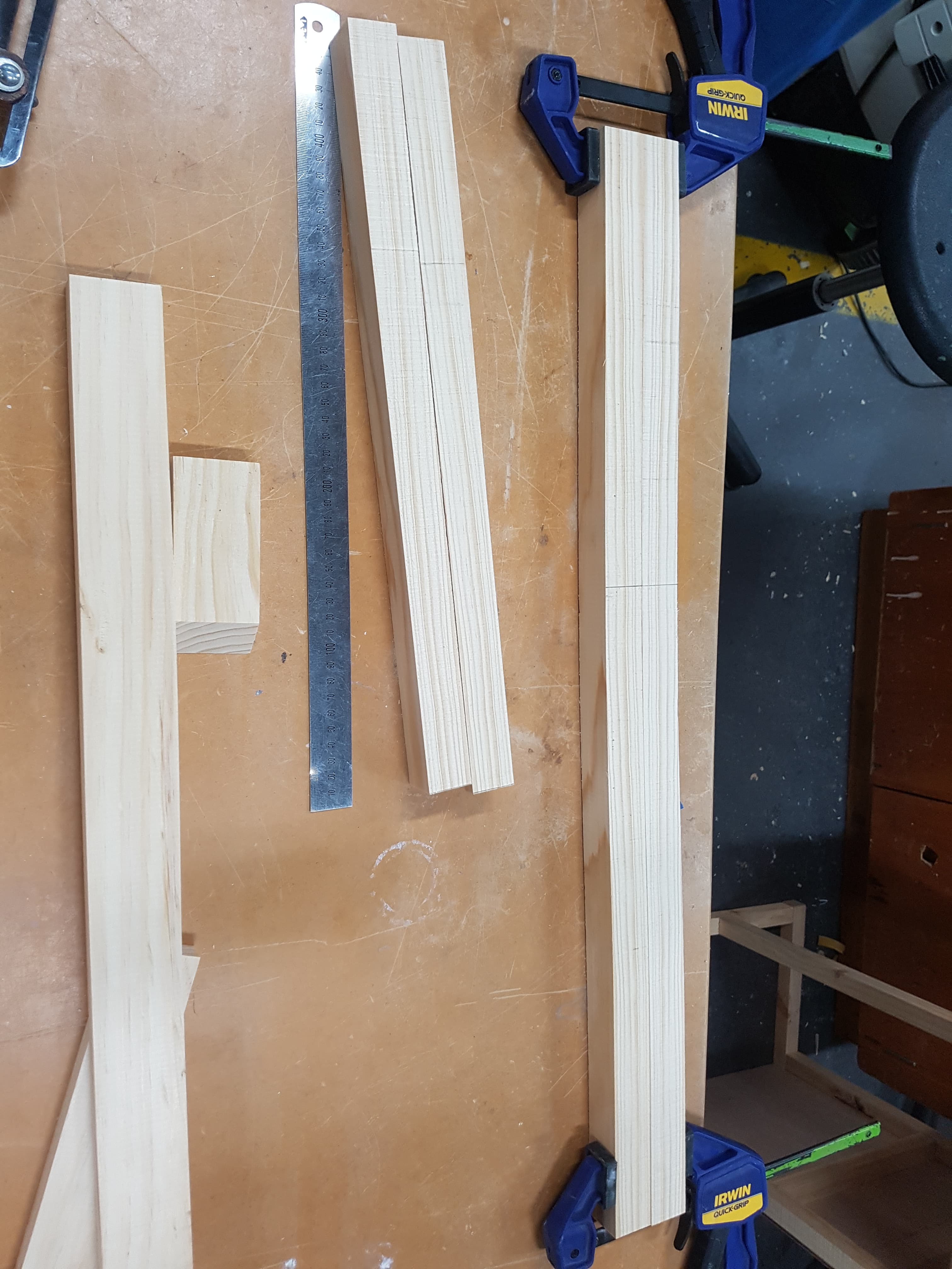After figuring out the angles required for the tenons for two of the legs, the next step was to measure and cut the lengths of timber required both for the inside supporting frame and the stool legs.