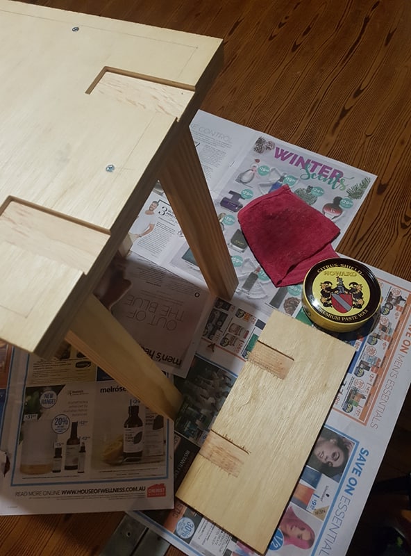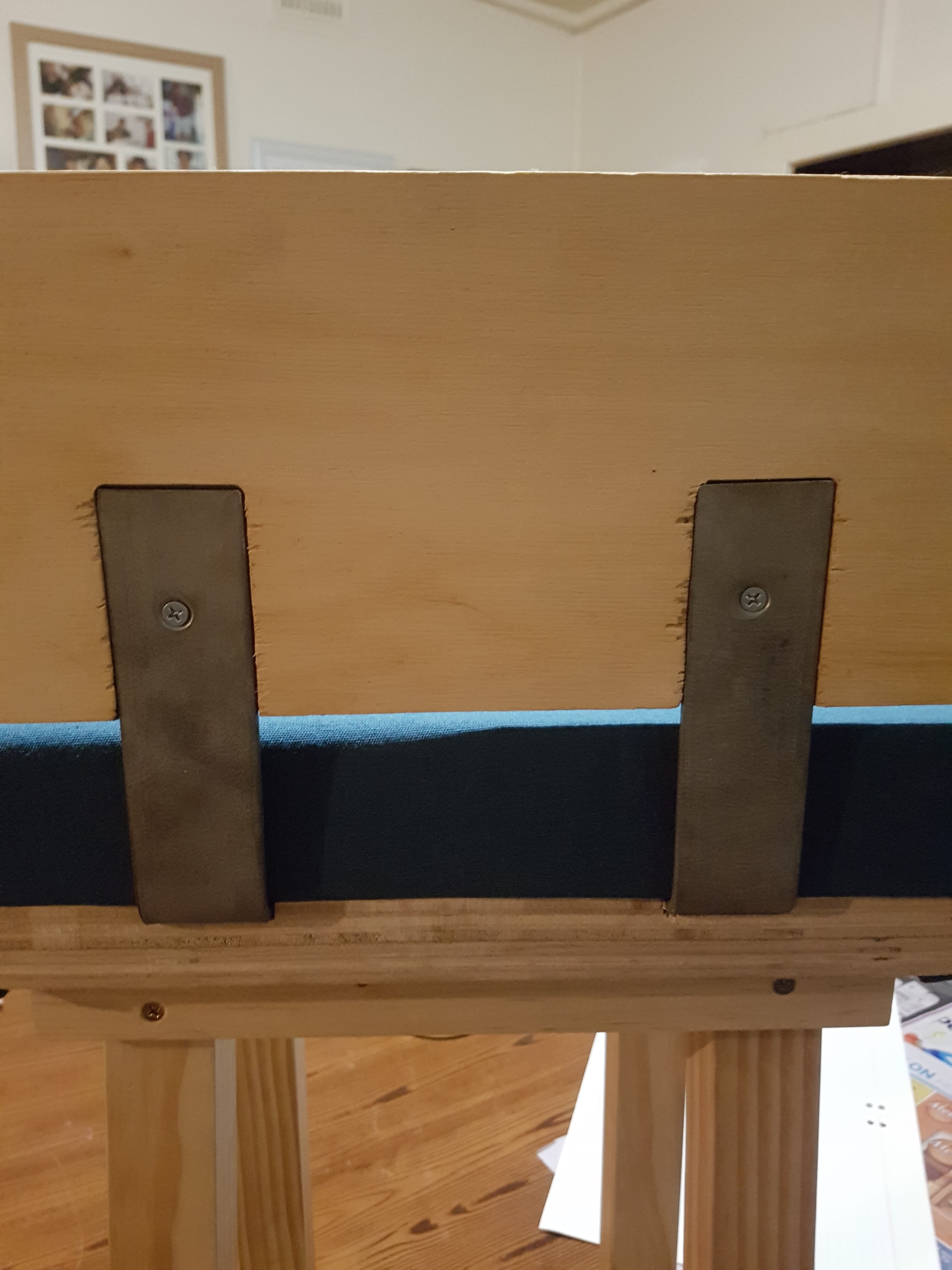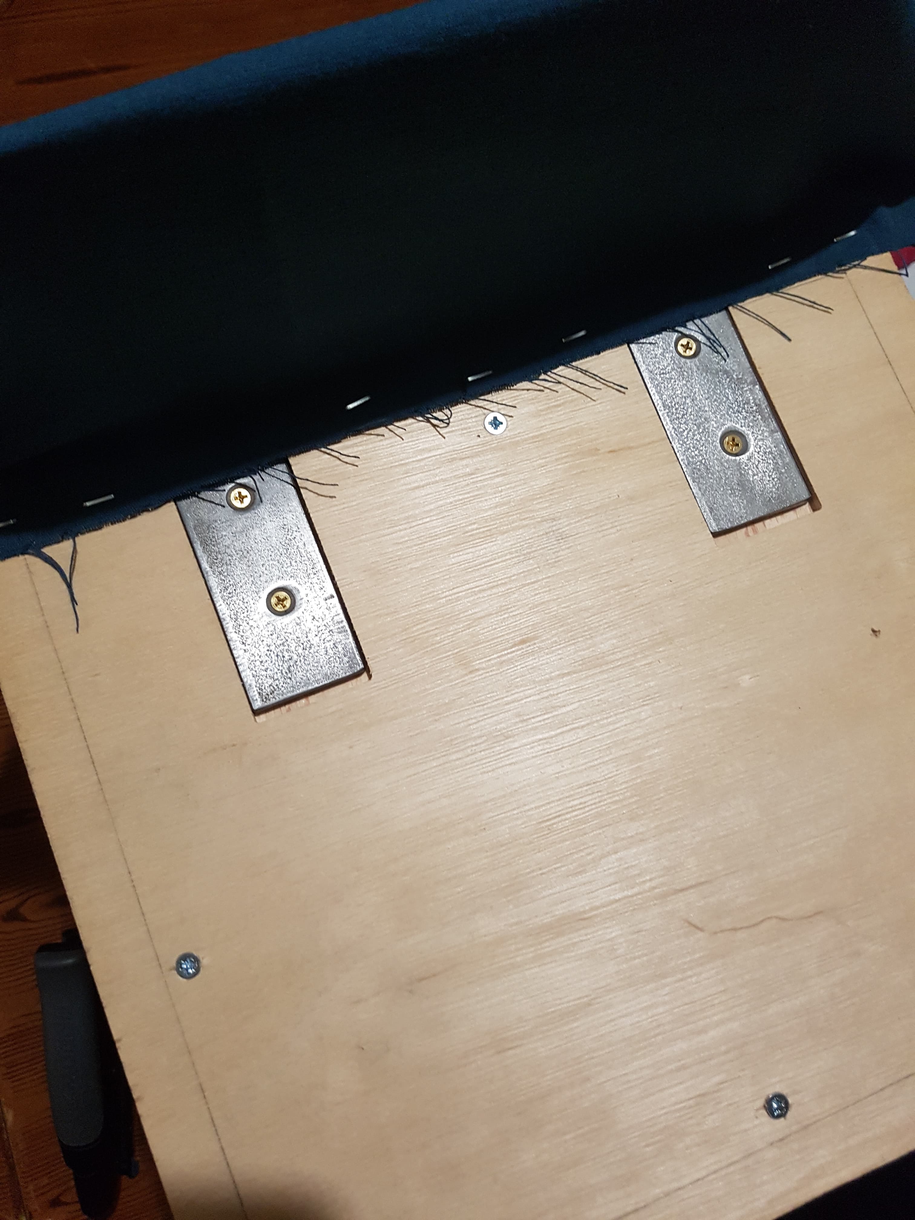 Giving the wax enough time to soak and set in the grain of the wood, I then screwed the brackets into the bottom of the seat before beginning the upholstery process.