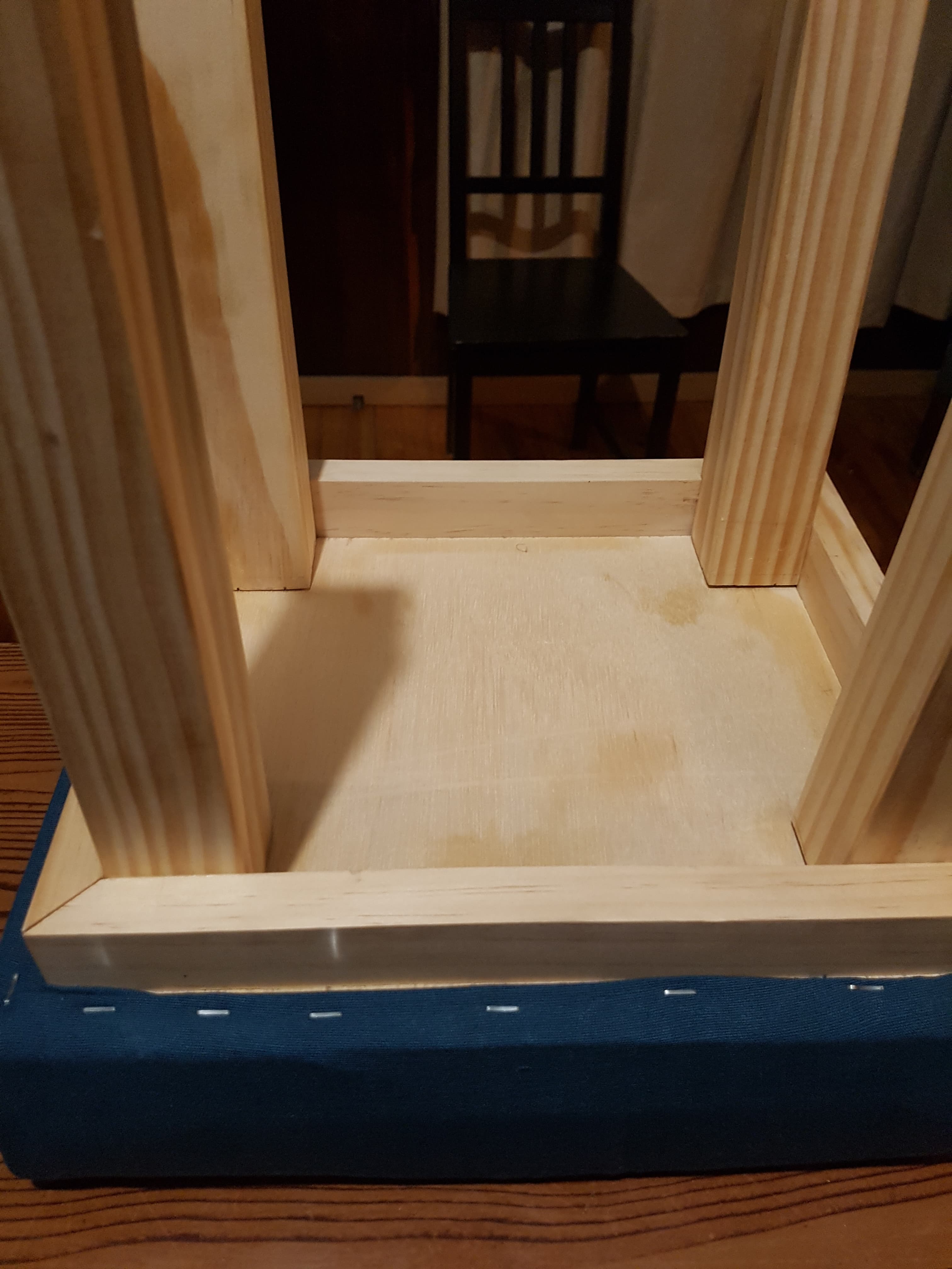 3. Cut the mitres of the frame for around the stool legs under the seat