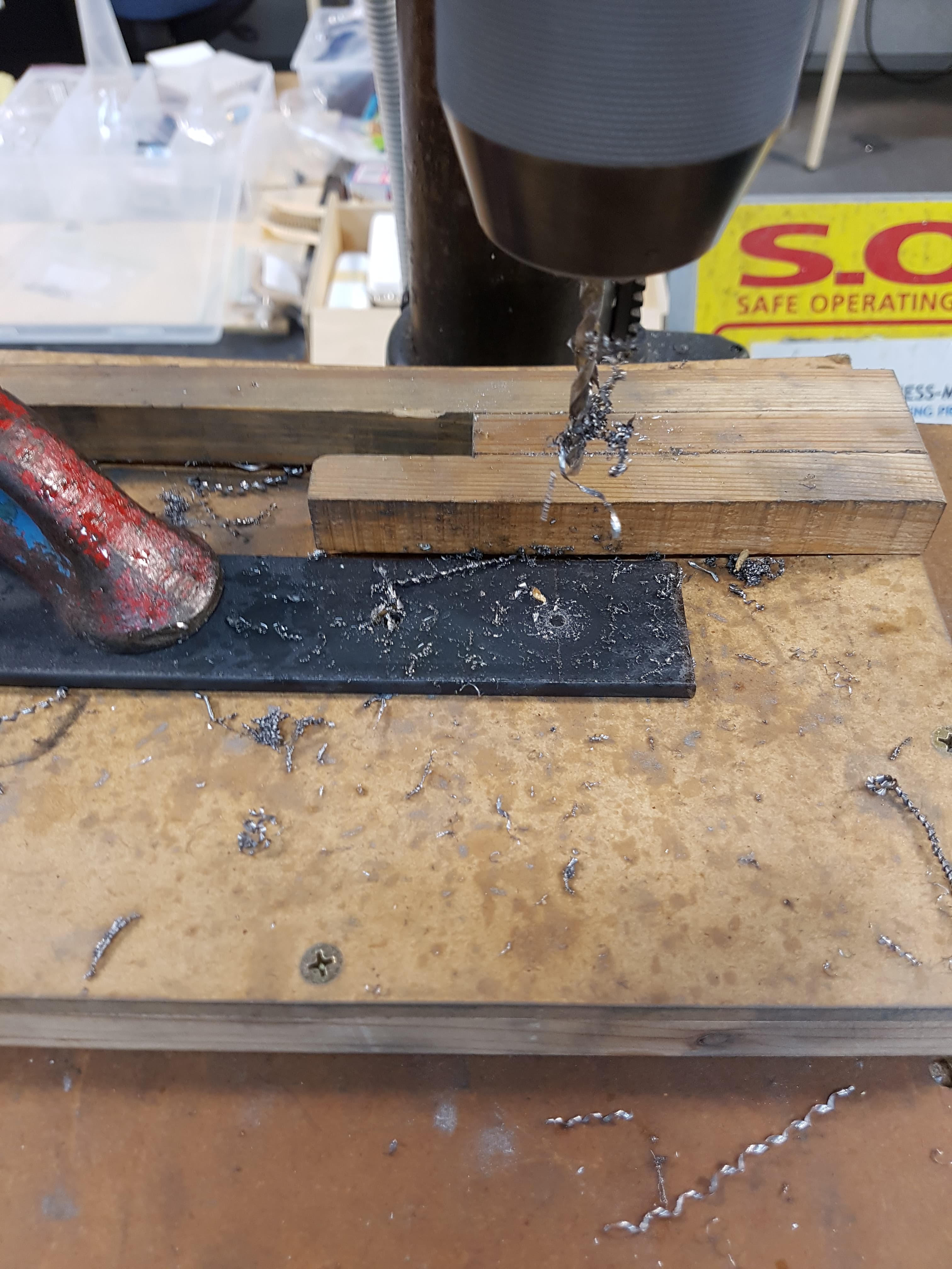 Before starting on the stool legs, the holes were drilled into the metal brackets and counter-sunk. This was done in order to try and optimise use of time in the workshops as many students would be using the woodwork machinery.
