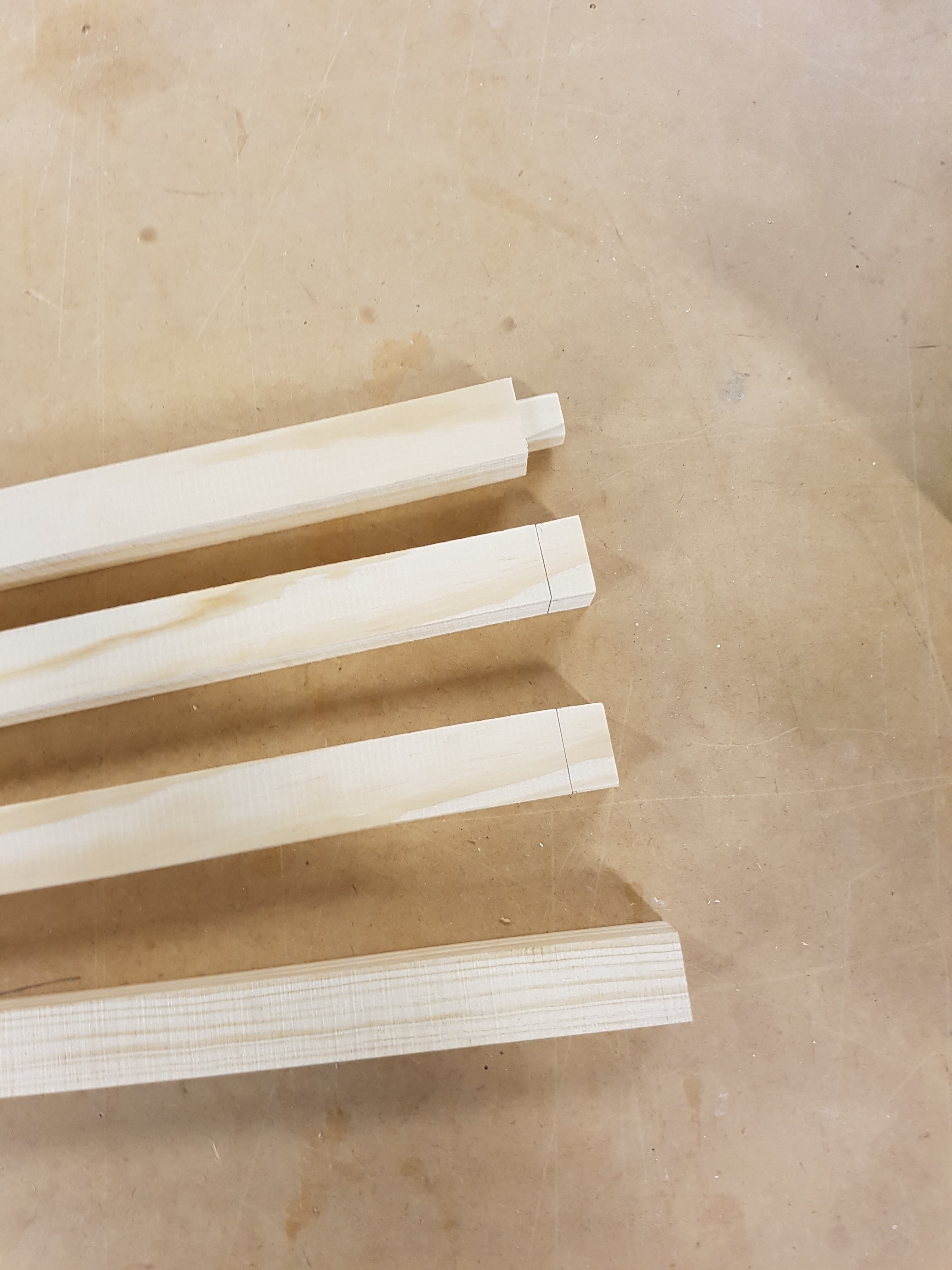 The straight tenons were the first ones that I cut in order to confirm the size that the tenon needed to be in order to fit the CNC-cut mortises inside the frame.
